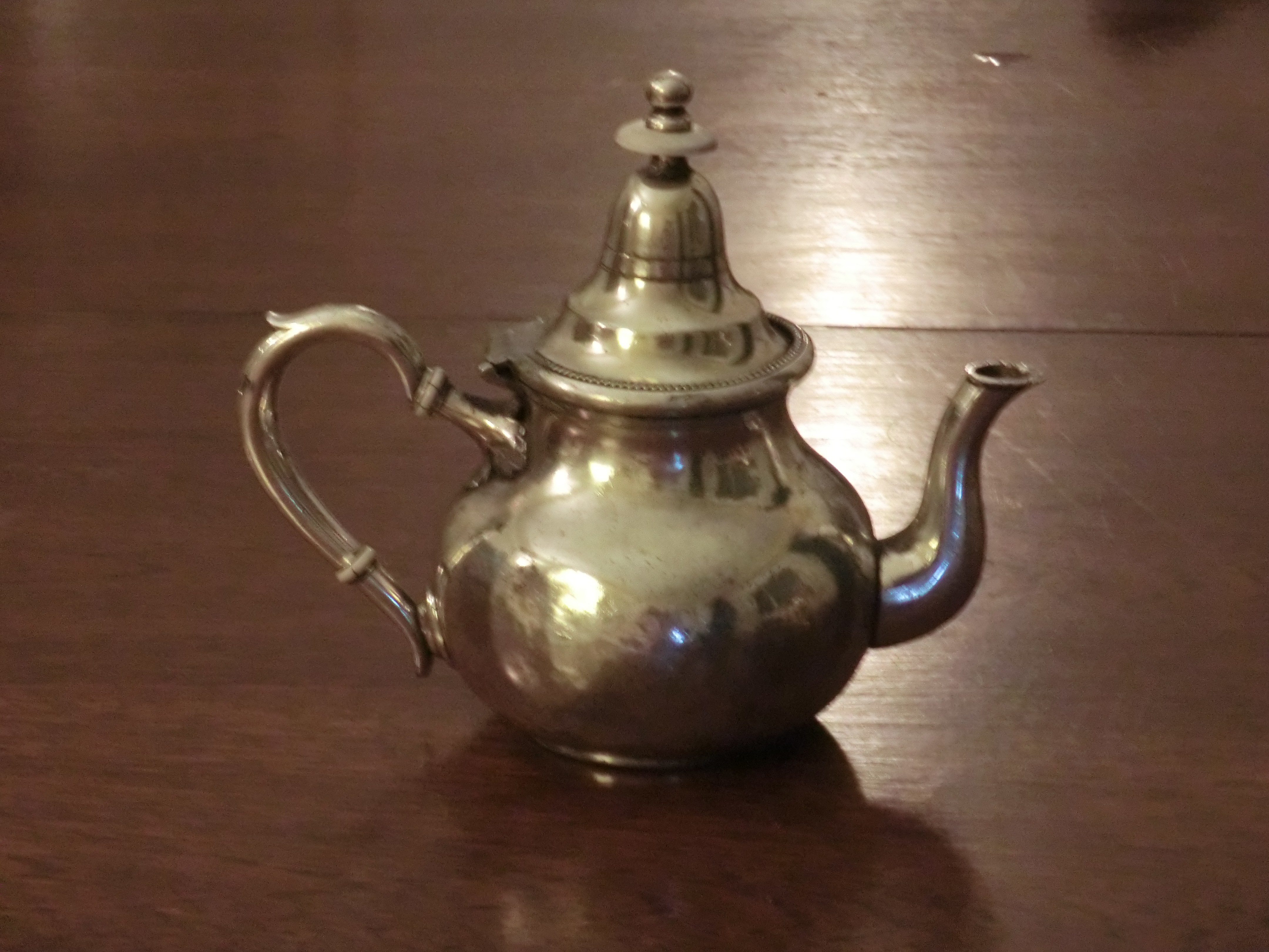 1. Not a great deal more to say at this point – I am doing some research on Wright here in Morocco and in England, and hope eventually to write a book. But there is very little information easily found at the moment. One thing that’s clear though is that Richard Wright was probably not himself a very important individual – a commission agent rather than a silversmith. I think he had silver plated objects made to order for Moroccan merchants who then exported them to Morocco. What is interesting is that Wright teapots are the first, I think, to have the characteristic ‘Moroccan’ pointy lid; and at least one author believes that the ‘typical Moroccan’ teapot was designed in Manchester.