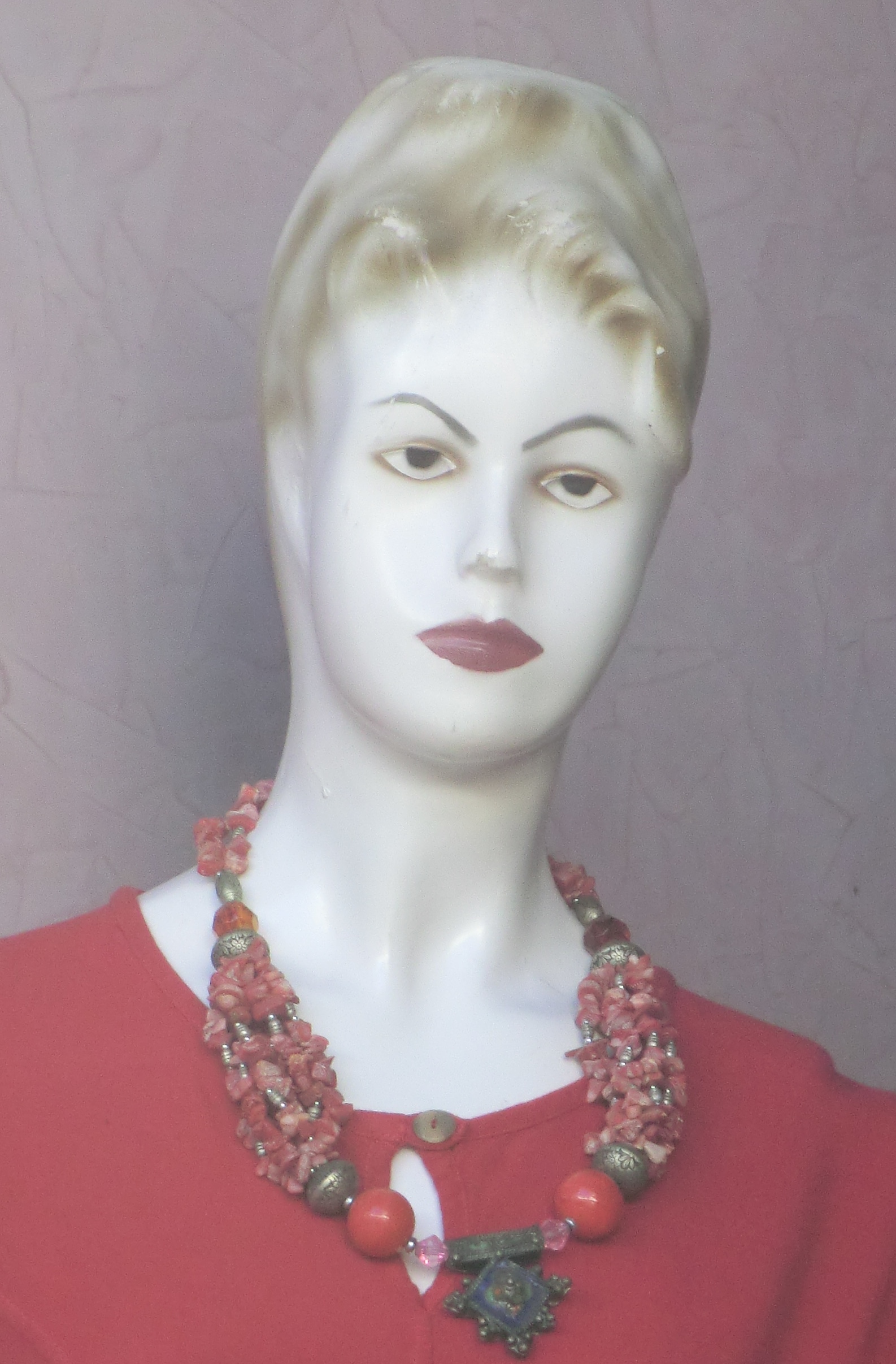 But for the most part they are old and chipped, faces from the past with dated hairstyles and sullen pouts. Even amongst these humanoid figures there are subtle hierarchies. At the top of the tree are a pair of ur-mannequins, the Adam and Eve of Moroccan couture, a battered teddy-boy and his moll. I suppose that several decades ago an enterprising manufacturer got hold of the moulds, perhaps from France, perhaps even from a departing French business, and churned out the mannequins in cheap plastic for several decades. They are everywhere. Once recognized, they become like the song that Italians call a canzoncina tormentone, the melody that you can’t get out of your head. I can’t walk down a street without spotting, nodding to, and sometimes counting these strangely familiar faces. In the museum at Essaouira there is a very ornate Jewish bridal gown in a glass case, a waterfall of sequins, brocade and ribbon, and standing before it a few months ago, I was suddenly startled to recognize Eve staring soulfully out at me through the narrow slot in the costume’s veil. It can feel a little like Mrs Ravoon, the ghastly heroine of the modern ballad who turns up in the last line of every verse (Facing the fens, I looked back at the shore / Where all had been empty a moment before, / And there by the light of the Lincolnshire moon / Immense on the marshes stood MRS RAVOON!’).