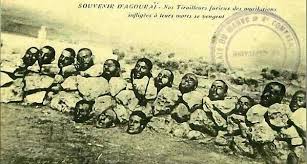 There’s a picture that comes up quite often in the social media, of a line of severed heads on a drystone wall in Morocco. It’s actually a picture postcard, with the caption SOUVENIR D’AGOURAI. NOS TIRAILLEURS FURIEUX DES MUTILATIONS INFLIGES A LEURS MORTS SE VENGENT, and the example I find on the web is stamped, and addressed to a Mme Robin in Bourges. The postmark is military, and it seems perhaps to be a trophy photograph taken when Senegalese tirailleurs had their sanguinary revenge on the Rifi bands who had bested them at the battle of Ehri in 1914.