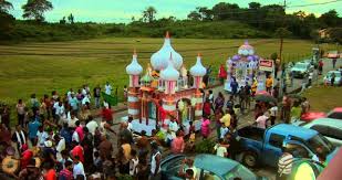 Today there are just over 100,000 Muslims in Trinidad, about five per cent of the population; and fewer than one per cent of Trinidadian Muslims, according to Pew, are Shi’ites, mostly descended from Indian indentured labourers. This means presumably that there are some 1,000 Shi’ites in Trinidad and Tobago. In other words they haven’t left, though they are a pretty small group. But they still make a noise: there is a large annual Muharram parade, known as ‘Hosay’ for the martyred Imam Hussein, which takes place in the first fortnight of Muharram each year (and does move properly through the year with the Muslim calendar). Blood, whips and razors play no part in the proceedings. Instead, Hosay is a great procession of raucous, happy people, banging drums and singing. They carry huge ‘tadjahs,’ which are model mosques, like the great floats at a carnival, built each year by families who preserve a strict and traditional order of precedence. Not unlike the pirate and artillery guilds of Salé with their gigantic Moulid al-Nabi candles, or the bonfire guilds of Lewes. These tadjahs are spectacular, up to thirty feet high and brightly coloured, like bouncy castles, or Disney palaces, rolled on casters along traditional routes from St James which culminate at QRC (Queen’s Royal College) in the centre of Port of Spain, where prayers are said for the martyred Imam. The word tadjah is a Creolisation of ta’ziya, which started life as a model of the tomb of Hussein borne at such festivals. Afterwards, the tadjahs are taken down to the sea at Cocorite and broken up on the beach (though, alas, “Nowadays they are disposed of in a more environmentally safe manner”).