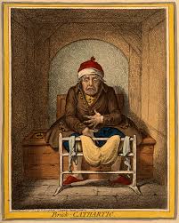 C is for Cathartic, a word we think we know, forgetting that catharsis (“releasing repressed emotions”) is a metaphor: a Cathartic was the second degree of laxative in the mediaeval pharmacopoeia, fiercer than the milder Laxative, milder than the dreaded Drastic – which last beggars imagination.